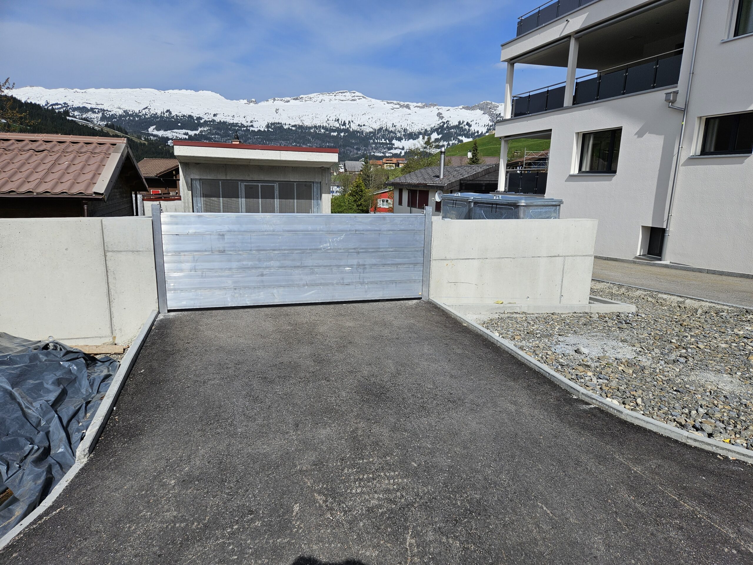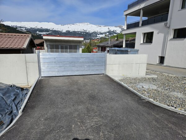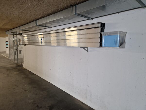 Die Anschlusspfosten sind fix versetzt, bei grösseren Spannweiten werden zusätzlich Mittelpfosten installiert. Im Einsatzfall müssen lediglich die mit Dichtungen versehenen Aluminiumbretter eingesetzt werden – das ist schnell und einfach erledigt.